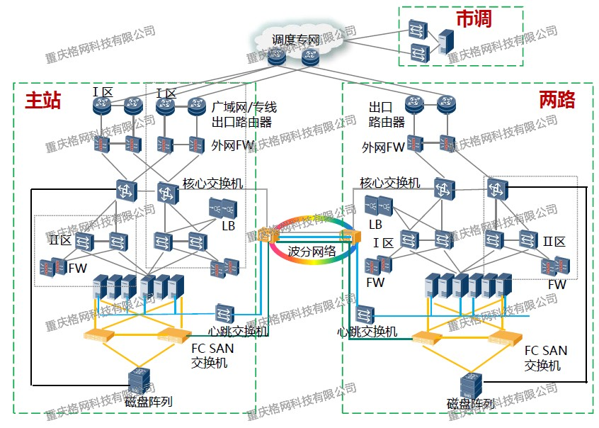 实现江北主调和两路备调的一体化方案,单设备或单数据中心故障不影响系统正常运行。