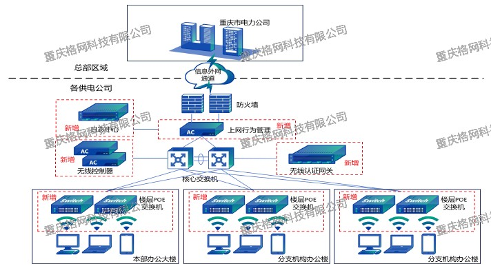 完成供电公司本部办公大楼、营业厅,供电所等区域信息外网无线网络部署,满足数字化供电所建设和员工日常移动业务的工作需求。
