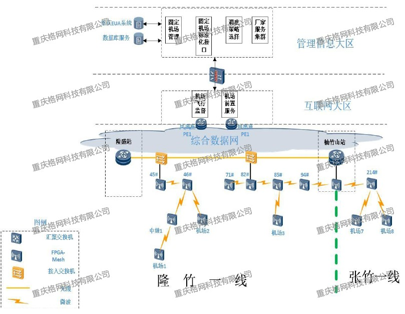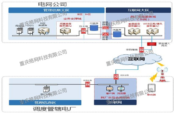 有线光纤和无线微波通信互为备份,保障业务可靠性,通过电力综合数据网接入互联网大区和管理信息大区业务系统。
