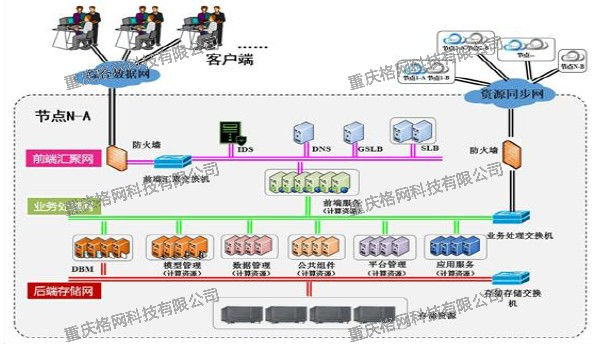 每个云站点内部分为前端汇聚、业务处理和后端存储三层网络,采用万兆双以太网结构建设。