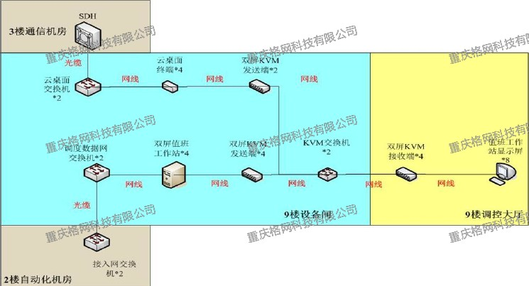 搭建一套KVM系统,用于值班工作站主机/屏幕分离的延伸,包括:双屏KVM发送端8个、2台KVM交换机、双屏KVM接收端4个(接入值班工作站显示屏)。